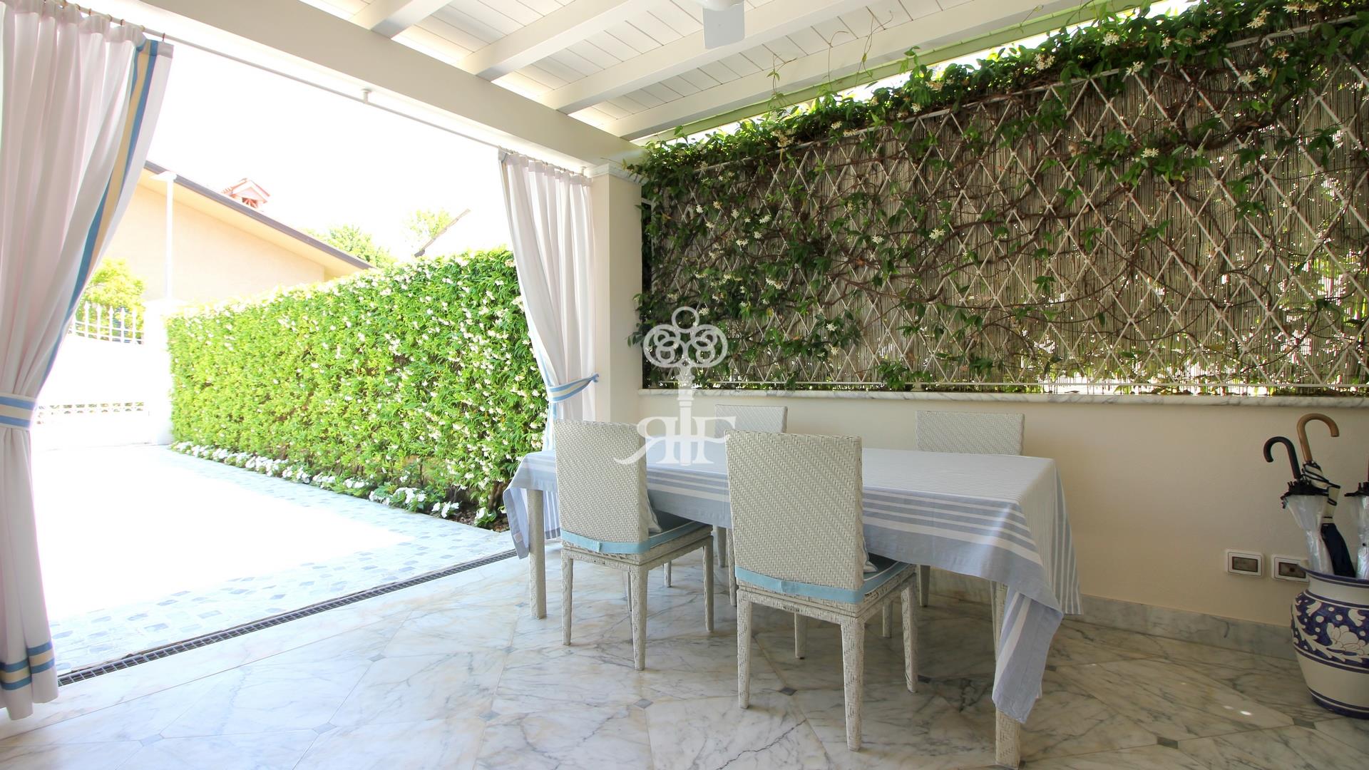 Villetta Emilia is located in the heart of Forte dei Marmi, just 400 meters from the sea, on a quiet street with limited traffic.On the ground floor there is a cozy living room with kitchen with an access to a covered summer veranda, divided into relax area (two comfortable sofas, armchairs) and area for al fresco dining.Also on the ground floor there is a bathroom with shower and a spacious bedroom with an access to open veranda-solarium.On the first floor there is a master bedroom with bathroom and a third bedroom with an extra single bed and a bathroom.Parking space for car and bicycles.Air-conditioning, Alarm, internet Wi-Fi.