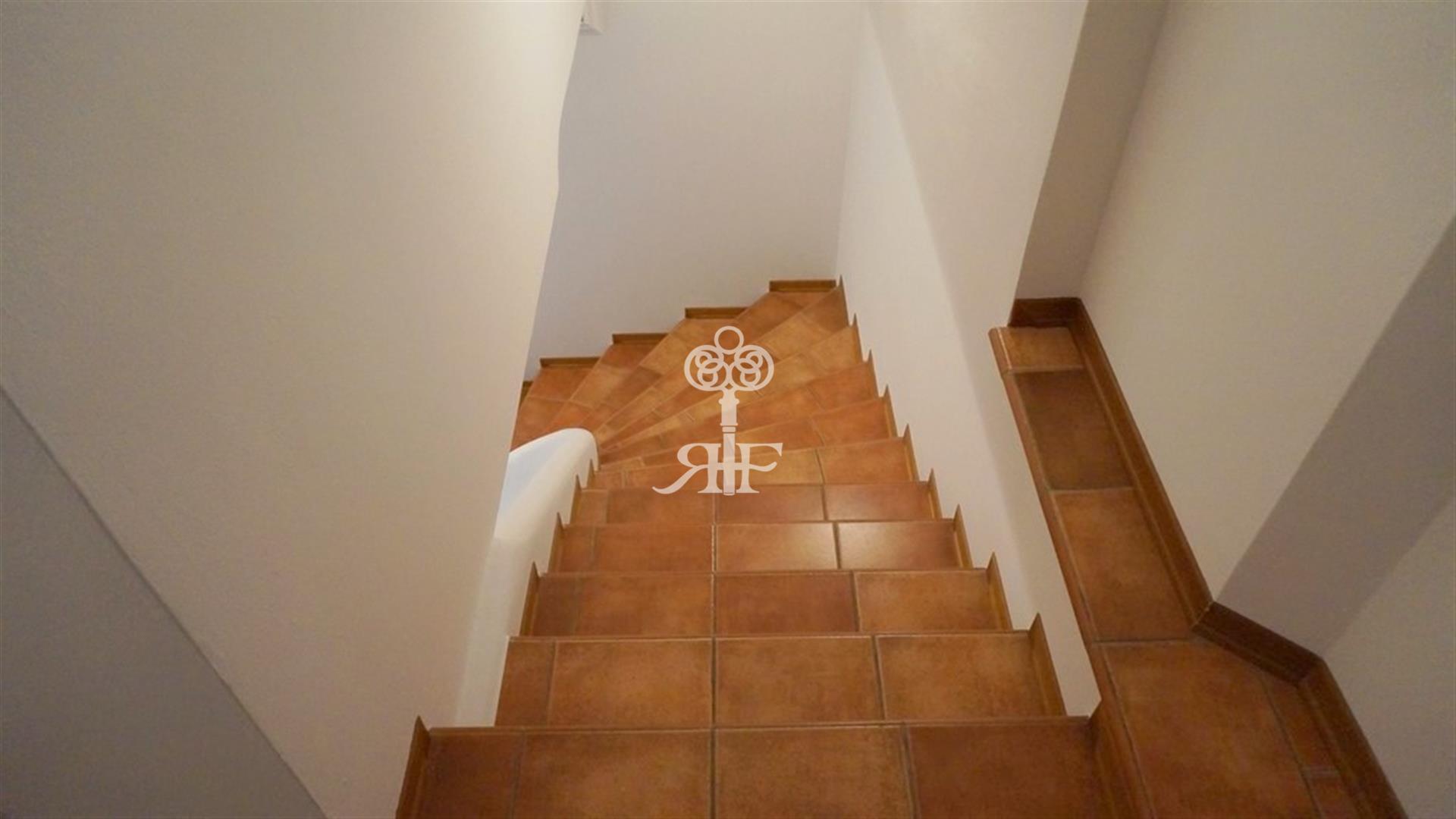 On the first floor there are two double bedrooms, each with private bath and access to a large outdoor terrace.