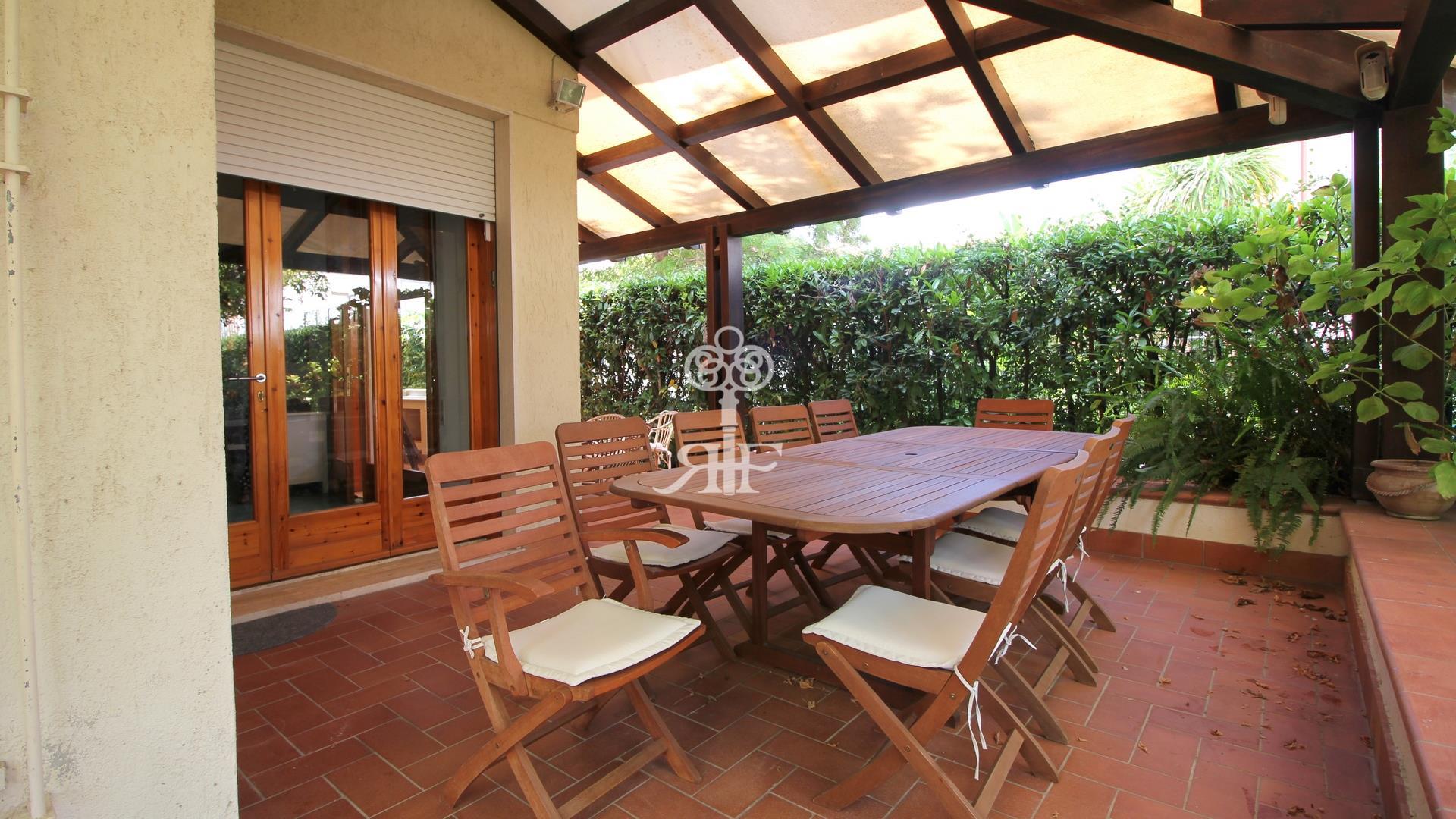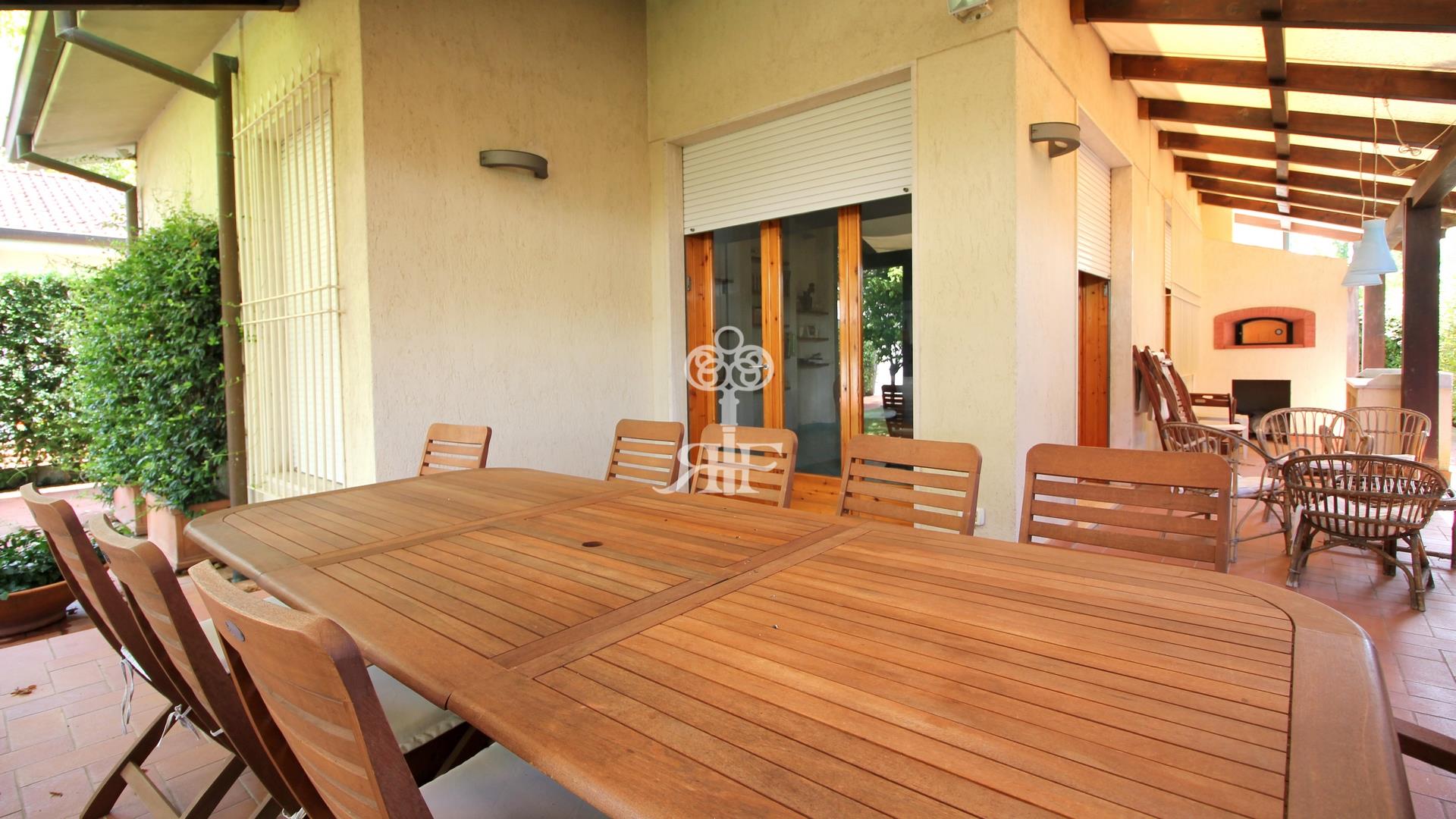 Forte dei Marmi, centro. Vendesi villa con giardino situata a 600 m dal mare.La villa si sviluppa su due piani, ha una superficie interna di 261 m2 e un giardino di 478 m2.Al piano terra è composta da soggiorno, cucina, bagno di servizio, tre camere da letto, una delle quali con bagno en suite e guardaroba, verande esterne.Al primo piano dispone di quattro camere da letto, due bagni, due terrazze.